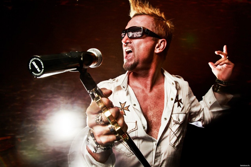 Парень поет в микрофон на сцене