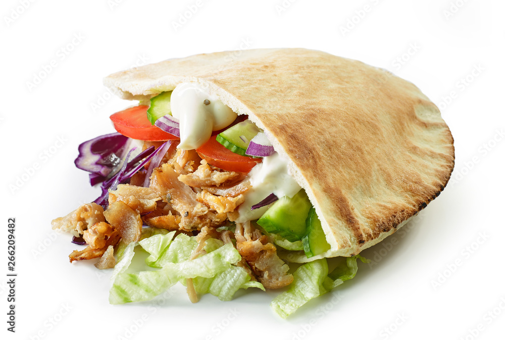 Шаурма в пите на белом фоне