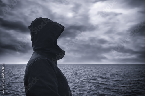 Фотографии с капюшоном на фоне моря